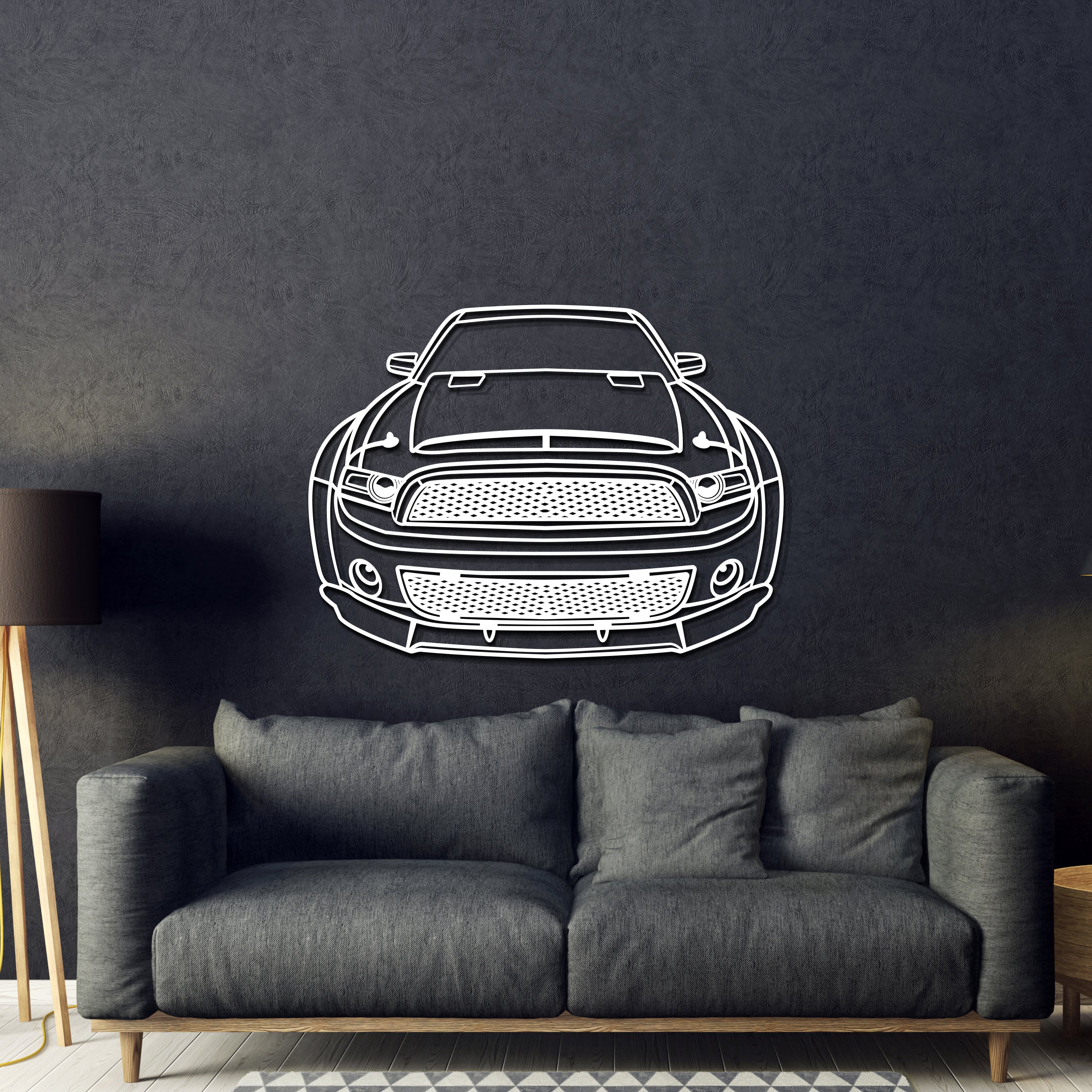 This 2013 Mustang Shelby Super Snake Front View Metal Car Wall Art will turn any car enthusiast's home. garage. hallway. living room. bedroom. or office into a unique space. add a stylistic look and captivate petrolheads as well as visitors.